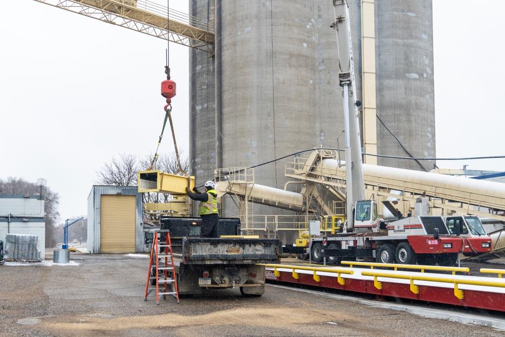 Schwab Construction recently completed some crane work at ADM to replace a grain leg section.